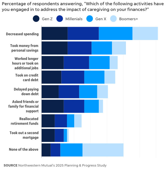 Enter the Sandwich Generation. Let me put it out there bluntly— younger generations are taking on a growing financial burden for caretaking compared to previous generations, all while caring for children and balancing their careers.
